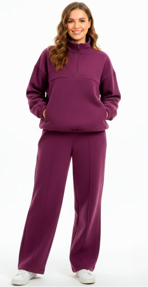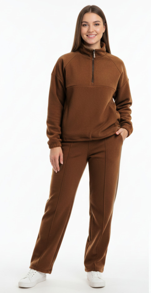 - Брюки прямые со стрелками спереди, карманы в боковых швах, низ на регулируемой резинке.