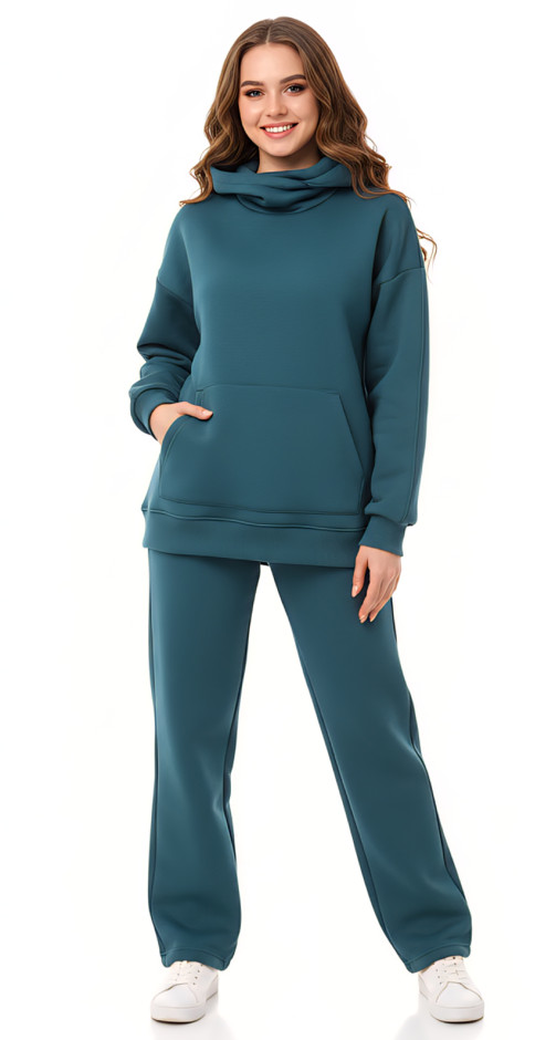 • Толстовка свободная с капюшоном и цельнокроеной стойкой,карман кенгуру.