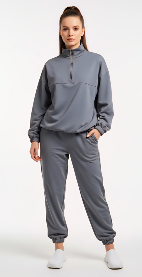 - Свитшот со стойкой и центральной застежкой неразъемной тесьмой -молнией.